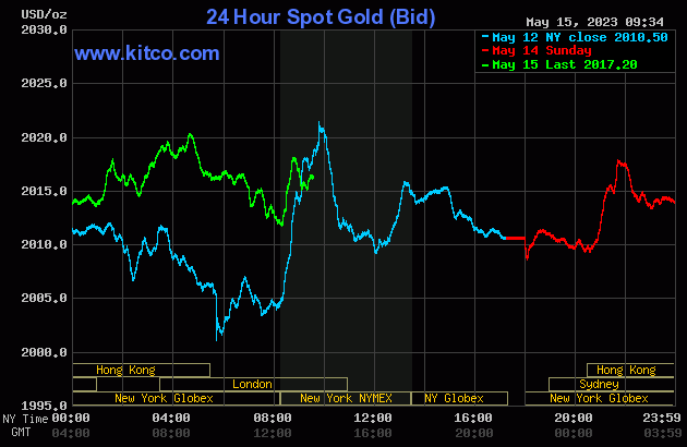 Los precios del oro y la plata se están negociando cerca de los niveles sin cambios en el día en las transacciones iniciales de EE. UU. el lunes. Los operadores están a la espera de nuevos datos fundamentales, ya que se avecina una semana de datos ajetreada, incluidas las negociaciones destinadas a evitar que el gobierno de EE. UU. incumpla sus obligaciones de deuda. oro de junio subió $0.20 a $2,020.00 y la plata de julio subió $0.031 a $24.185.