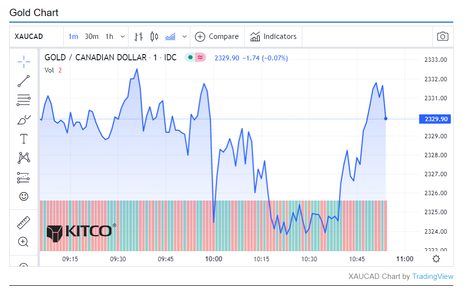 Tras el anuncio, el oro con un precio en dólares canadienses se mantuvo prácticamente sin cambios, pero pudo retener sus ganancias marginales a primera hora de la mañana, cotizando por última vez a 2.329,93 dólares canadienses la onza, un 0,26 % más que el día.