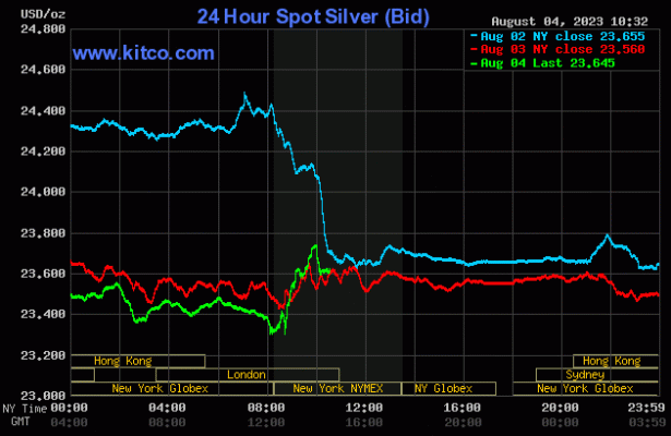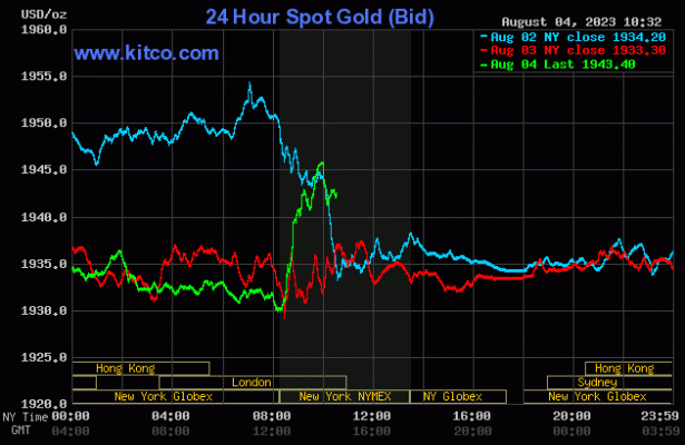 Los precios del oro subieron un poco en las primeras operaciones del viernes en EE.UU., mientras que los precios de la plata bajaron ligeramente, a raíz de un informe de empleo en EE.UU. de julio que se acercó a las expectativas del mercado. Parece que la conclusión del informe es que sugiere que la economía estadounidense no está funcionando demasiado bien. oro de diciembre subió $ 1,00 a $ 1,969.80 y la plata de septiembre bajó $ 0,192 a $ 23,51. Ambos mercados tocaron mínimos de cuatro semanas durante la noche.
