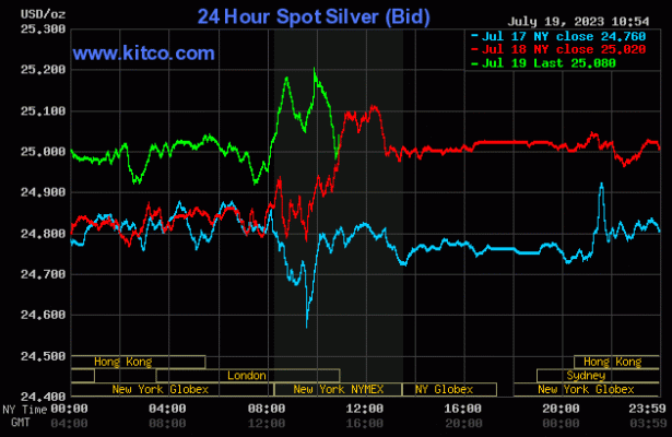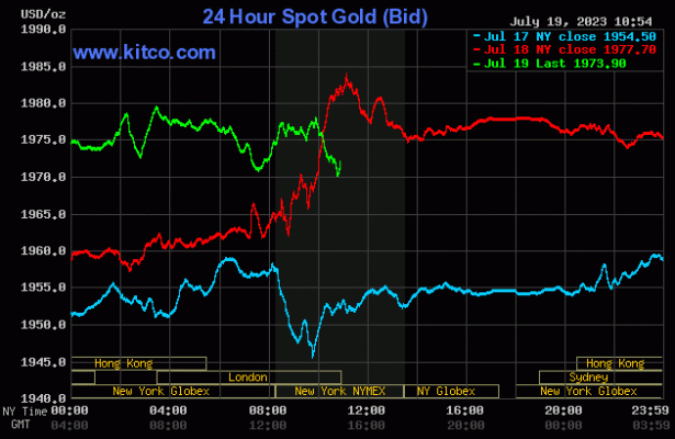 Los precios del oro y la plata bajaron un poco en las primeras operaciones de EE.UU. el miércoles. Se presenta una leve toma de ganancias de los operadores de futuros a corto plazo, impulsada por un rebote a mitad de semana en el índice del dólar estadounidense. Los gráficos se han vuelto alcistas a corto plazo para ambos metales, así que no se sorprenda si los alcistas intervienen para comprar la caída de precios de hoy. El oro de agosto bajó $3,40 a $1977,40 y la plata de septiembre bajó $0,026 a $25,23.