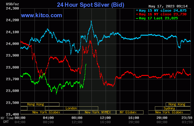 Los precios del oro y la plata son modestamente más bajos en las transacciones iniciales de EE. UU. el miércoles. Un índice resurgente del dólar estadounidense que alcanzó un máximo de seis semanas durante la noche y tiene una tendencia alcista es un elemento externo del mercado significativamente bajista que trabaja contra los toros del mercado de metales a mediados de semana. Oro de junio fue la última vez que bajó $ 1.80 a $ 1,991.20 y la Plata de julio bajó $ 0.038 a $ 23.855.