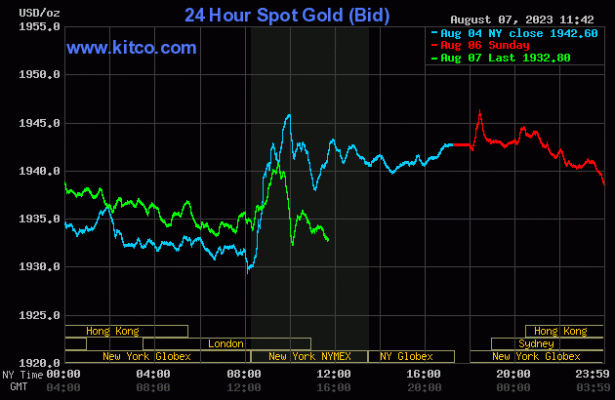 Los precios del oro y la plata son más débiles en las primeras operaciones del lunes en EE.UU. Los metales preciosos están viendo interés de venta ya que el índice del dólar estadounidense está más alto y los rendimientos del Tesoro de EE.UU. están aumentando para comenzar la semana de operaciones. oro de diciembre bajó $ 5.60 a $ 1,970.50 y la plata de septiembre bajó $ 0.206 a $ 23.51.