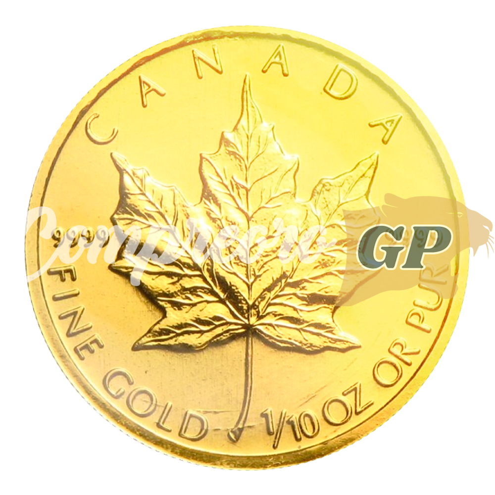 Moneda Canadian Maple Leaf Oro 24K ⅒ Onza Varios Años