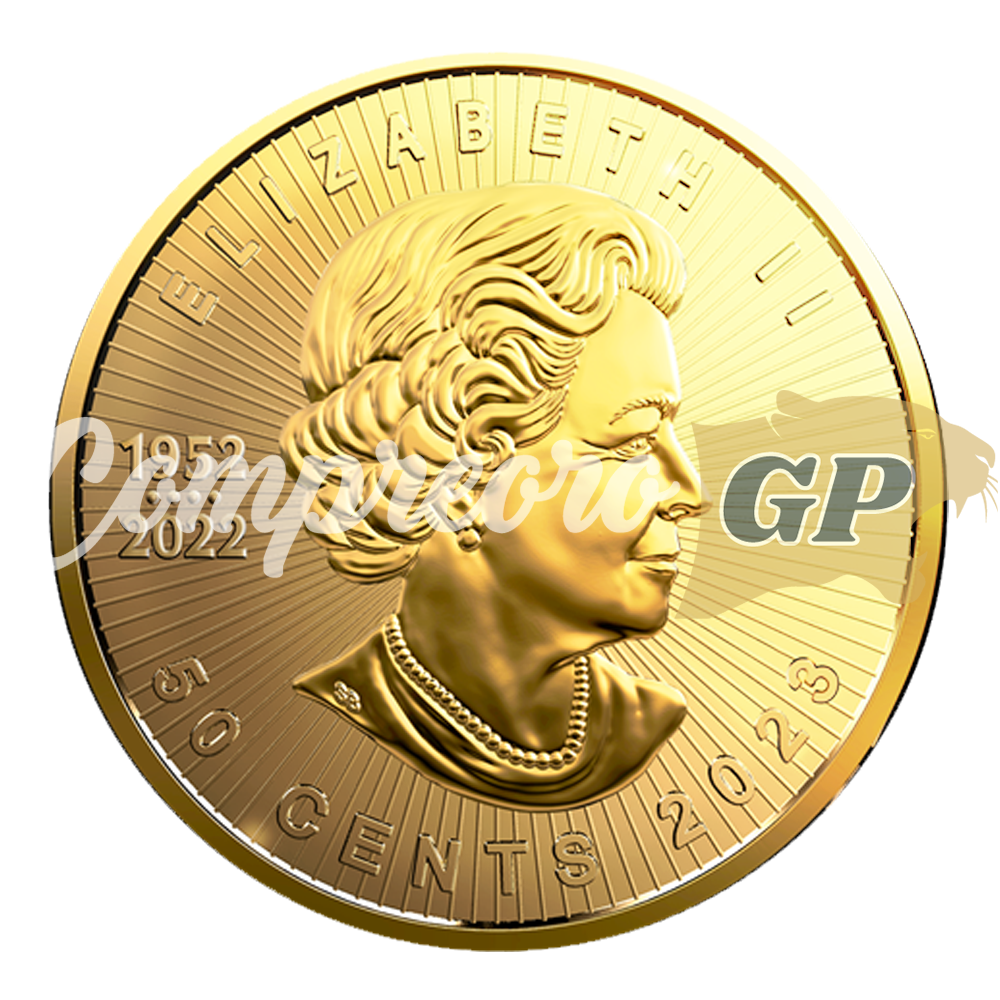 Las imágenes faciales de las Moneda Canadian Maplegram Gold 24K 1 gr. 2023 incluyen una efigie de la reina Isabel II. Su Majestad se muestra aquí en relieve de perfil derecho sin corona. Este diseño fue creado para la casa de la moneda en 2003 por Susanna Blunt y es el primer retrato de la monarca durante el reinado de Isabel II que carece de corona.