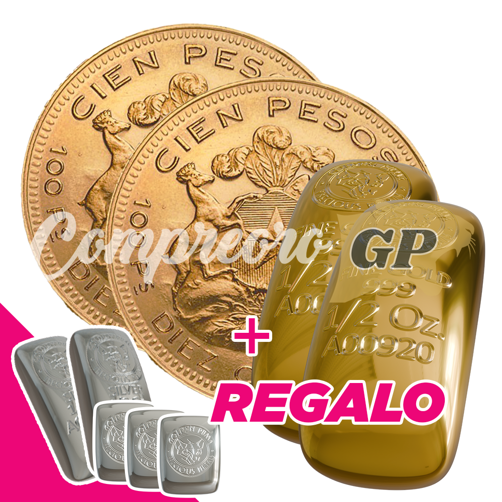 Pack 2 Monedas Cóndor Chileno Oro 100 Pesos + 2 Lingote 1/2 oz. Oro 24K + regalos