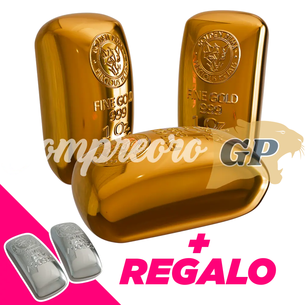 El pack de 3 lingotes de Oro 24K de 1 Onza (31,1 gramos) acuñado por Golden Puma es un fino producto confeccionado con metal de alta calidad de origen nacional puro .999, invertir en ORO siempre es la mejor opción en el largo plazo ya que este tiene una tendencia alcista constante en el tiempo lo que lo convierte en un producto ideal para inversionistas que deseen ampliar su portfolio de inversiones sin correr el riesgo de una perdida de valor aunque siempre hay que tener en cuenta que “rentabilidad pasada no garantiza rentabilidad futura”.