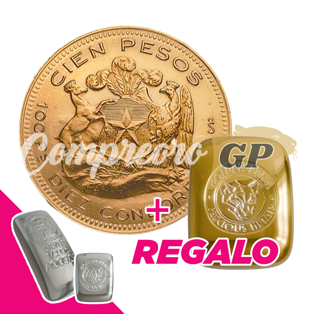 Pack Moneda Cóndor Chileno Oro 100 Pesos + 1 Lingote 1/4 oz. Oro 24K + regalos
